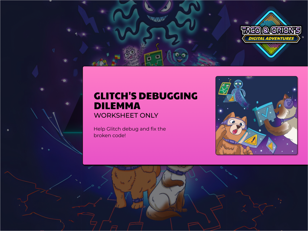 Glitch's Debugging Challenge Worksheet - Into the Digi-land Vortex | Taco & Orion's Digital Adventures