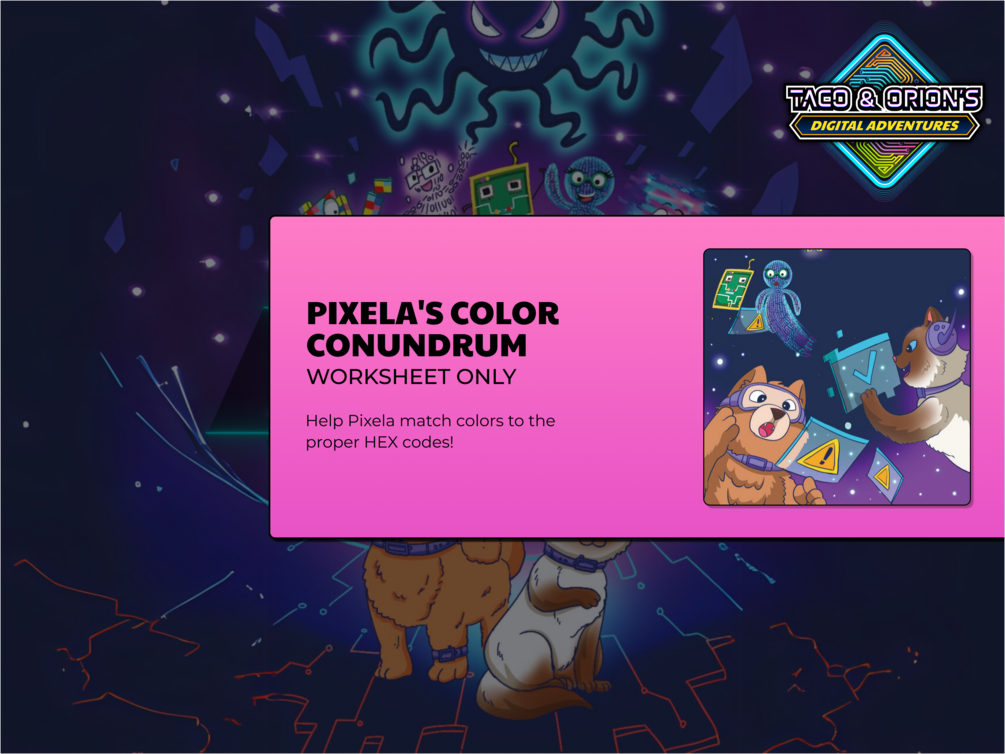 This is a supplemental worksheet for the STEM children's book "Into the Digi-land Vortex" from the Taco & Orion Digital Adventures series.